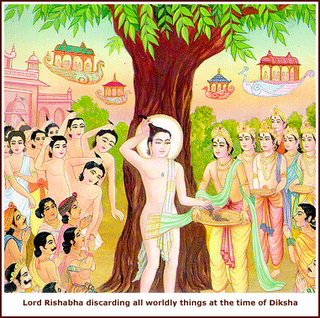 Lord Rishabh Dev discarding all things at the time of Diksha.png